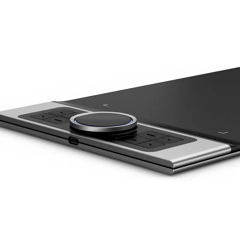 همچنین، این مدل دارای دو چرخانک (Dial Wheel) است: یکی مکانیکی و یکی مجازی. این چرخانکها به شما امکان میدهند سرعت تغییر در عملکردهای گوناگون را کنترل کنید، مانند تغییر اندازه قلم، زوم کردن، چرخش طراحی، یا پیمایش در صفحه. وجود دو چرخانک کنترل همزمان باعث میشود که در پروژههای طولانیمدت و دقیق بتوانید بسیار سریعتر از طریق ابزارها حرکت کنید و بهرهوری بالاتری داشته باشید.