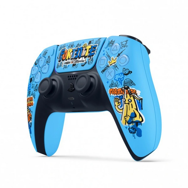 یکی از جذابترین بخشهای این نسخه خاص، ظاهر طراحی شده با الهام از بازی Fortnite است. این کنترلر دارای رنگبندی ویژه با المانها و شخصیتهای شناختهشده این بازی مثل Fishstick و Peely بوده که طراحی بصری چشمنوازی دارد و برای طرفداران Fortnite یک کالکشن جذاب محسوب میشود.